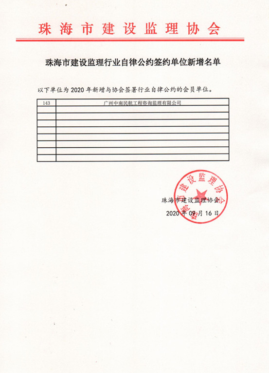 > 珠海市建设监理行业自律公约签约单位新增名单