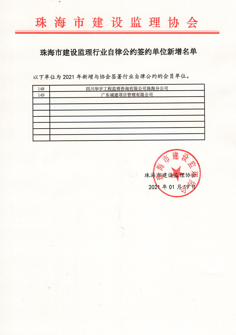 > 珠海市建设监理行业自律公约签约单位新增名单