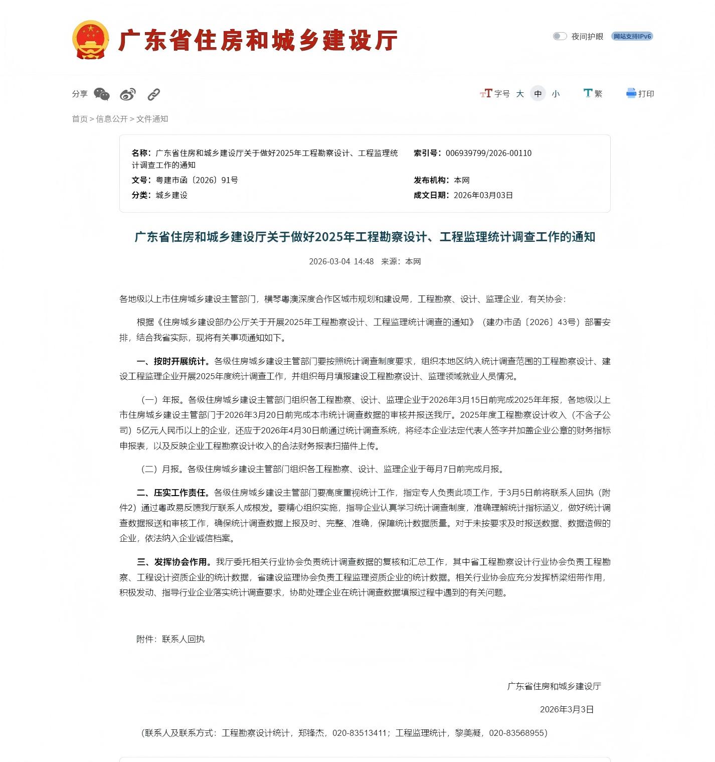 > 广东省住房和城乡建设厅关于开展2025年工程勘察设计、工程监理统计调查培训的通知