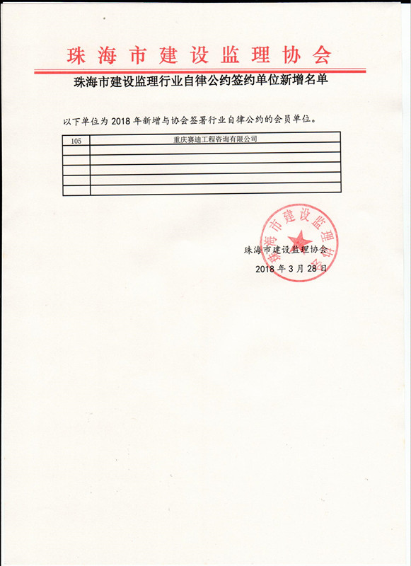 > 珠海市建设监理行业自律公约签约单位新增名单