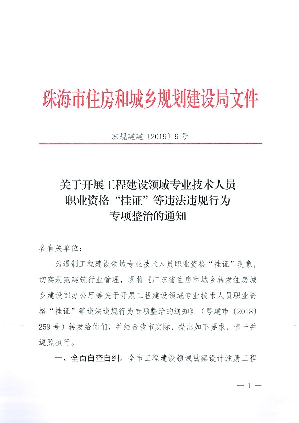 > 转发:关于开展工程建设领域专业技术人员职业资格“挂证”等违法违规行为专项整治的通知